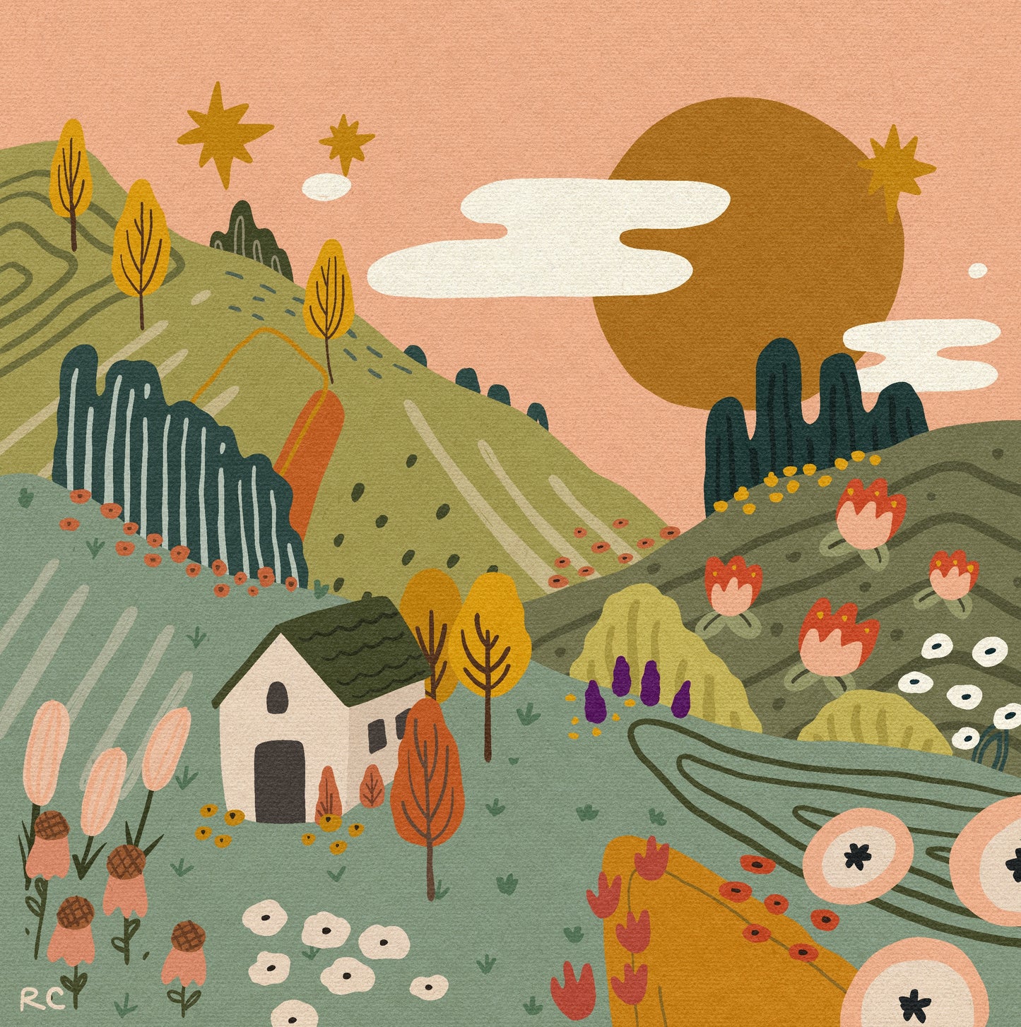 We wish we could pack up and move to this meadow, but this print will have to do for now! This print measures 8x8 inches.