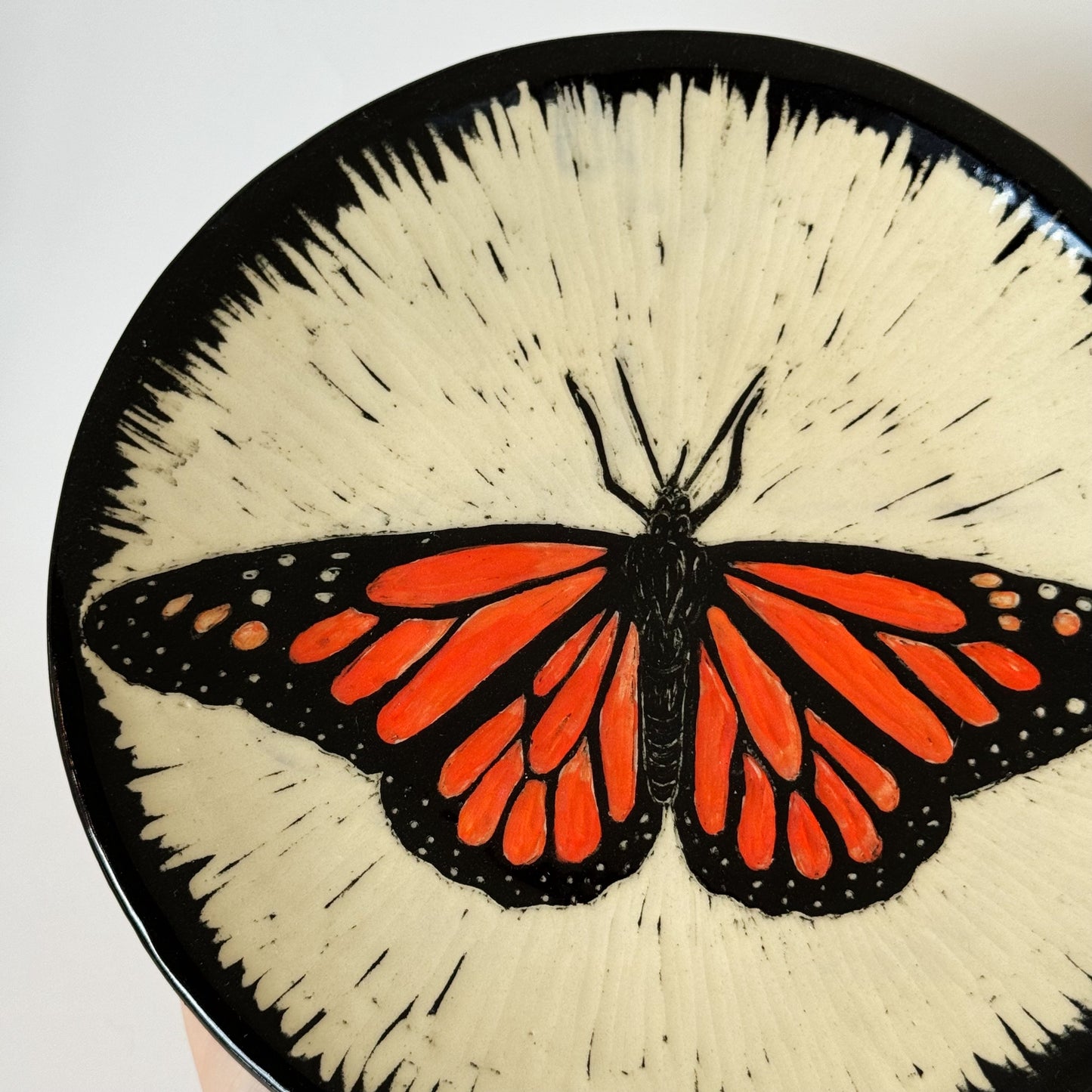 Each one of these lovely plates features a intricately carved monarch butterfly on the top and bottom of the plate!