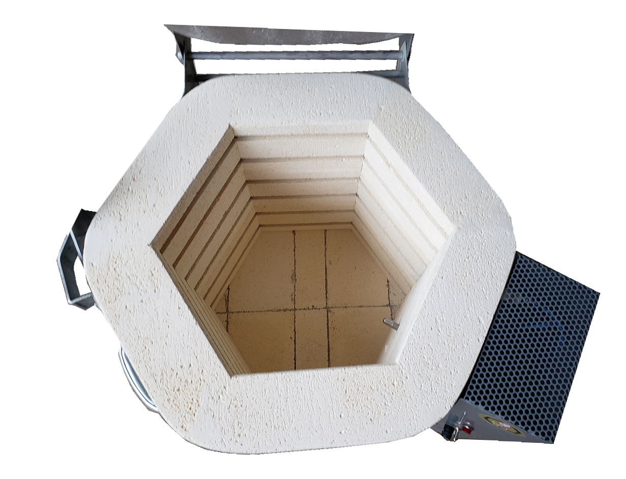 Inside dimensions: 12.5″ wide x 9 ” deep x 7.75″ high, fires to cone 6/2250°F