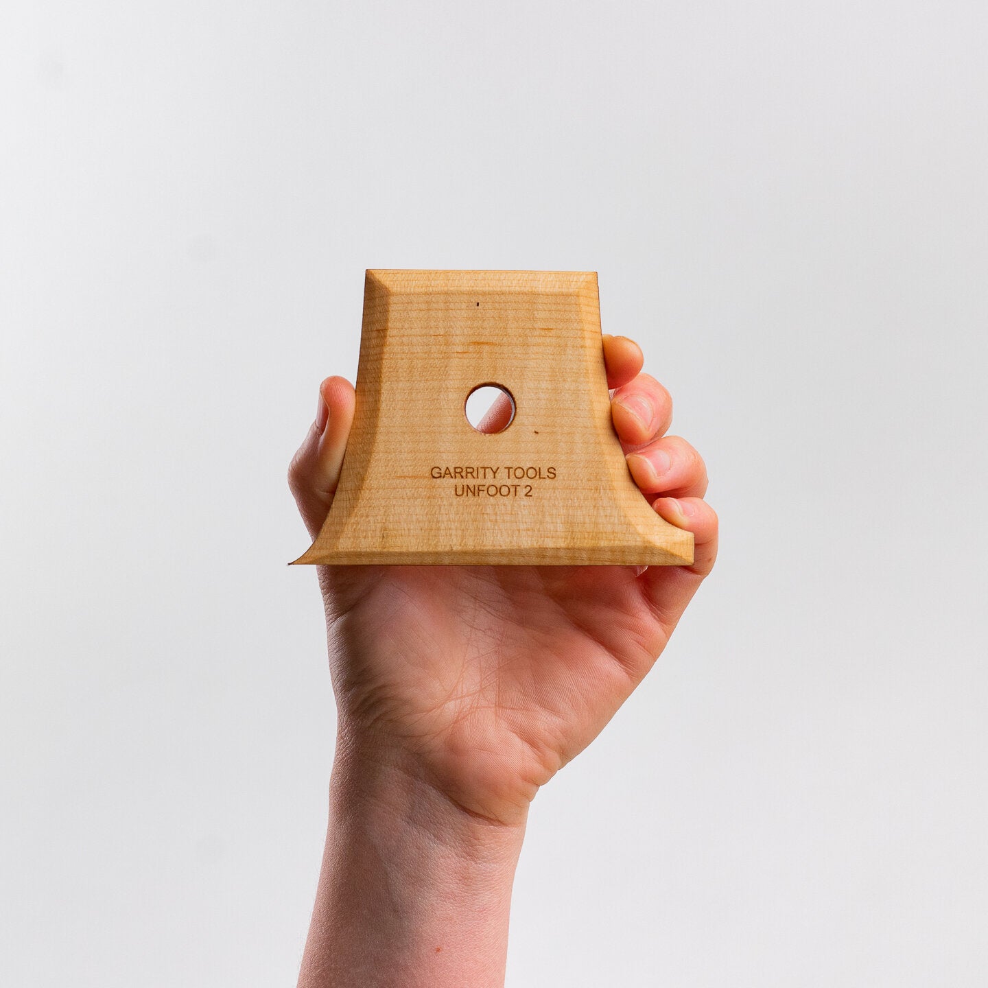 Unfoot 2 provides a simple way to give your vessel a bit of a lift. With curved sides that end in a point on one corner and a small flat edge on the other, you can undercut your clay while maintaining the shape of your walls. This tool will save you tons of time that you might spend trimming later.