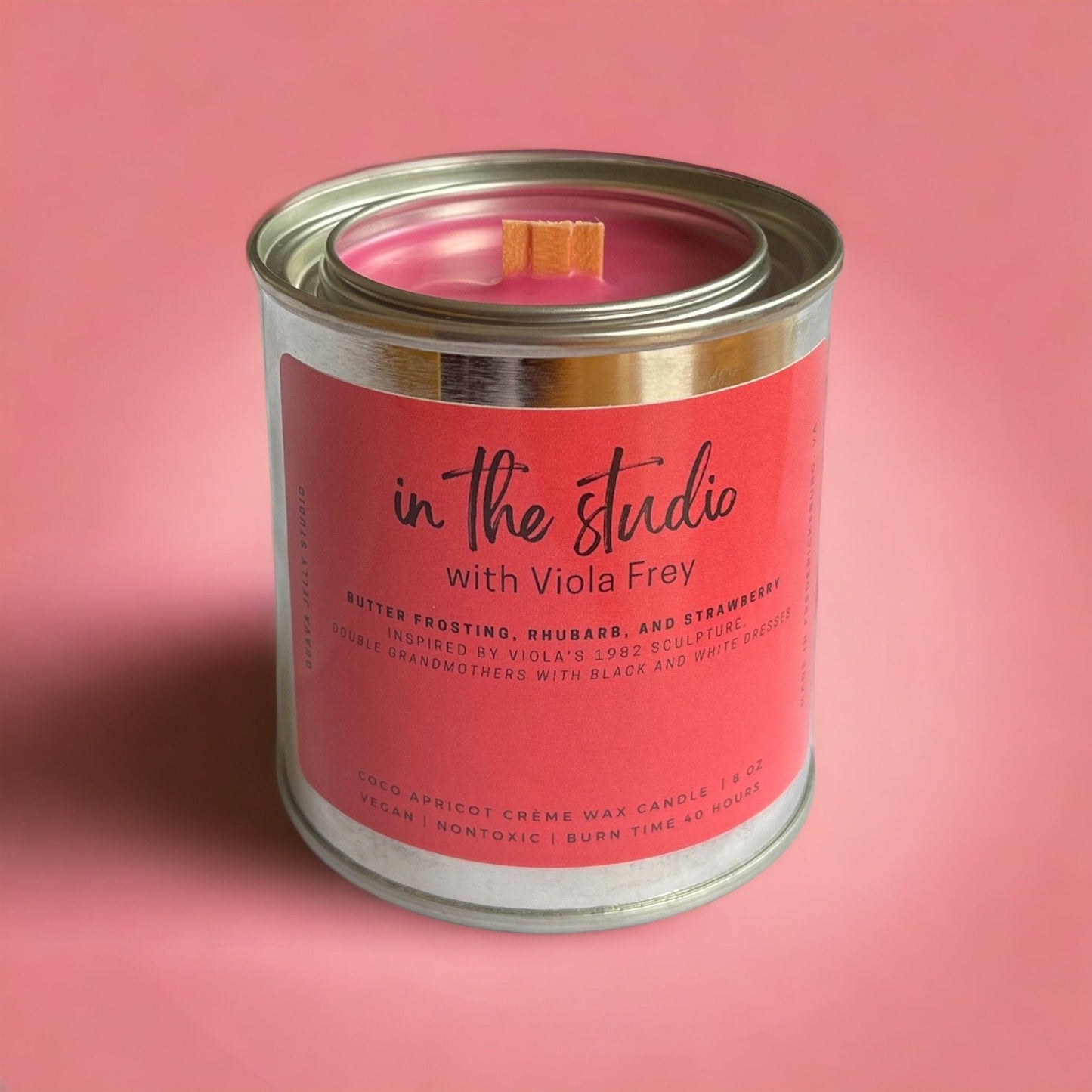 Our candle captures the essence of Frey's bold and whimsical style with scents of butter frosting, strawberries, and rhubarb, evoking a sense of joy and playfulness. Light this candle and transport yourself into the colorful world of Viola Frey's studio, where creativity and imagination abound.